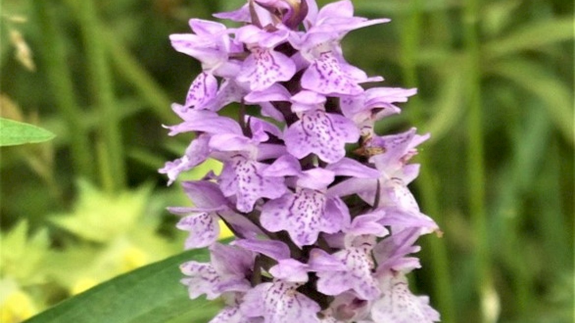 We fietsen nu steeds over het fietspad langs het kanaal Amelo Nordhorn en zien onderweg: diverse orchideeën, vogelsoorten, hazen en koeien, etc.