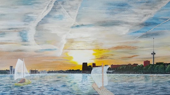 Expositie bij Inter Art Emmen (23 aug–15 okt) met kleurrijk werk van Marjan van der Linde, realistische en surrealistische schilderijen van Peter Stadens en organische beelden van Andra van Kranenburg.