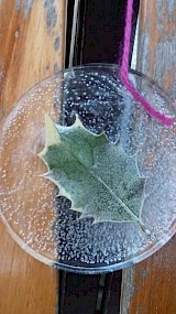 Doe in bakjes, een muffinvorm of kleine schaaltjes een klein laagje water en hang er een touwtje in. Ga op zoek naar besjes, rozenbottels, takjes of mooie blaadjes.