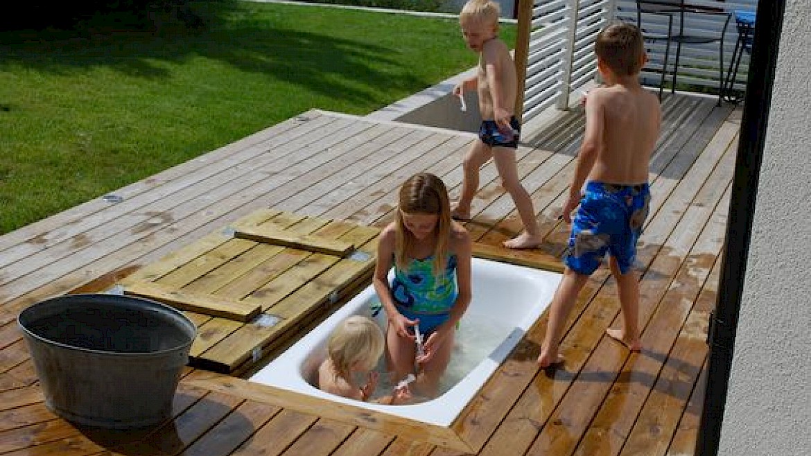 Ook de kinderen gaan hier ook van genieten! Een houten vlonder er omheen en in die warme, droge zomers die op ons af komen kunnen ze even heerlijk afkoelen (en jij zelf natuurlijk ook!)