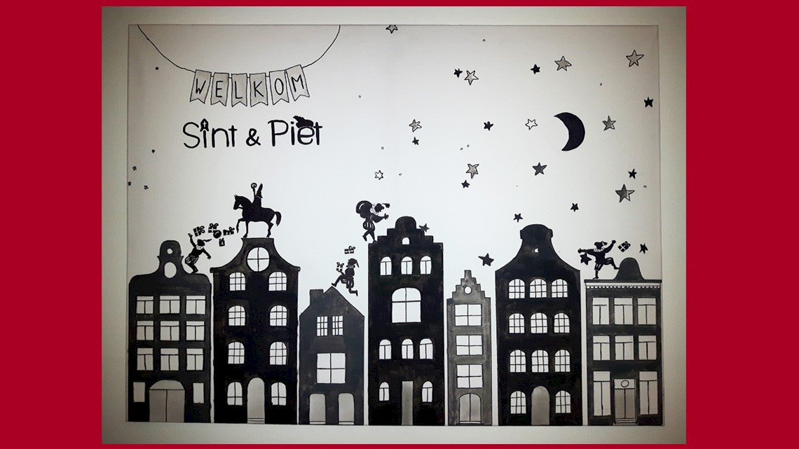 Wij maakten dit oer-Hollandse huisjestafereel met Sint en zijn Pieten op het dak.