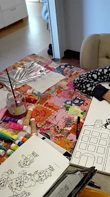 - een zwarte stift (dat kleurt wat makkelijker in bij de figuurtjes dan verf)