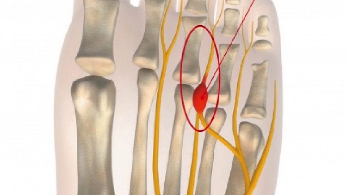 In onze voeten bevinden zich naast alle spieren en ligamenten ook veel zenuwen. Deze lopen tussen de middenvoetsbeentjes naar de tenen. Wanneer die zenuw wordt afgekneld, kunnen er enorme pijnscheuten ontstaan in met name de 3de en 4de teen. Door de spreidvoet worden de botjes gemangeld en de zenuwen afgeknepen waardoor er een ontsteking kan ontstaan.