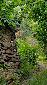 Die woorden liet hij over zijn doelstelling optekenen. In zijn domein moest juist alles kunnen groeien en bloeien, in samenhang met alles wat leeft. Slakken weer je niet uit de tuin, maar laat je ongeremd toe. 25 soorten slakken gaan daardoor in de van hen bekende gang door de tuin, op zoek naar eten. Het gevolg: grote gaten in het groot hoefblad. Nou en? Dat hoort bij de natuur. Onkruid trekken? Ho maar! Alleen als het echt moet. Om ervoor te zorgen dat een bijzondere plant niet in het gedrang komt. En dan niet ruwweg verwijderen, maar, als het ware, met een nagelschaartje weghalen. Wat kan blijven staan blijft staan. Honden en katten mogen om dezelfde reden niet in de tuin, want ze zouden zomaar van alles kunnen vertrappen of aan het graven kunnen slaan. En ook poepen en plassen, niet te vergeten. Een doodzonde in een tuin waarin geen mest en chemicaliën worden gebruikt.