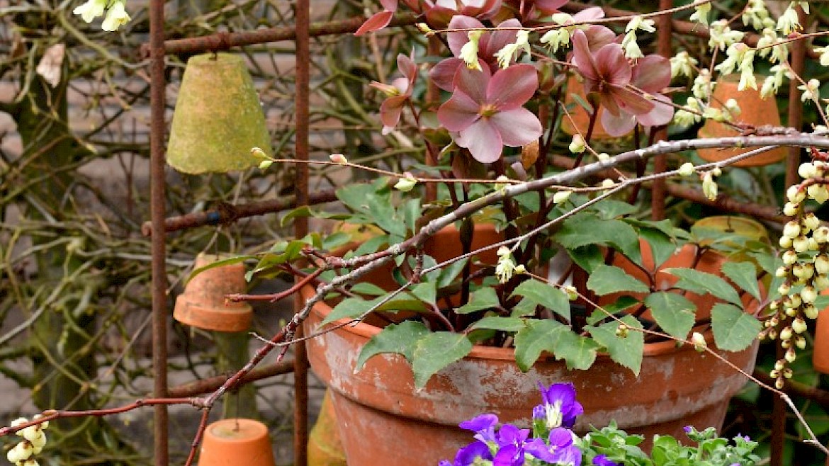 • Papierstruik (Edgeworthia chrysantha): “Staat hier in pot, de gele bloemen ruiken heerlijk.”