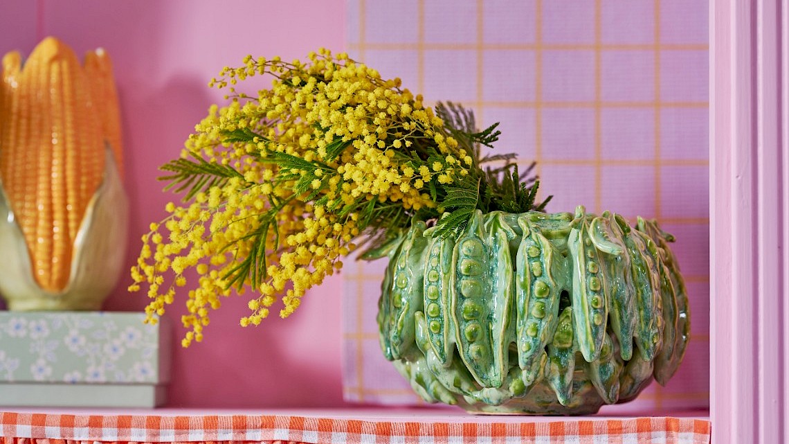 De cottagestijl uit de jaren 90 komt weer terug maar dan met frisser en vrolijker kleurgebruik. Een landelijke, gezellige en huiselijke uitstraling die doet denken aan het ongecompliceerde leven van vroeger. Voor het binnengroen vertaalt zich dat in de verrassende toevoeging van groente als decoratie of vazen en potten gedecoreerd met peulen of in de vorm van een maiskolf. Boeketten krijgen een biedermeiervorm: rond en romantisch. Voor kamerplanten is er hernieuwde aandacht voor kleine bloeiende planten. Je zet ze met z’n allen in één mand of maakt een groepje van losse potten.