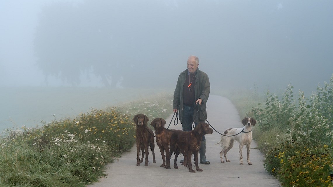0Henk ten Klooster (68) uit Broekland (dorp ten westen van Raalte) wandelt elke dag langs de IJssel met zijn vijf Ierse Setters. Met de ranke, maar vooral levenslustige jachthonden jaagt de oud-journalist van De Stentor en neemt hij deel aan veldwedstrijden over de hele wereld waarmee hij prestigieuze prijzen wint. Daarnaast zijn de honden vooral zijn metgezellen: “De Ierse Setter is het beste antidepressivum van de wereld.”