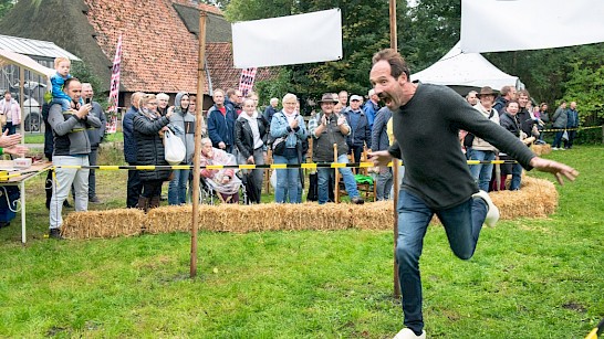 Boer Jan (winnaar Expeditie Robinson) wint de klompenrun tijdens de Naoberdagen in Lievelde. "Dat had ik nooit verwacht, ik loop nooit meer op klompen!" aldus Jan.