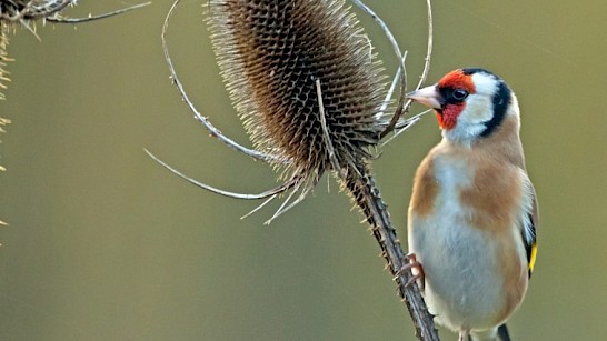 De putter zorgt met zijn kleurrijke veren voor vrolijkheid in de tuin.