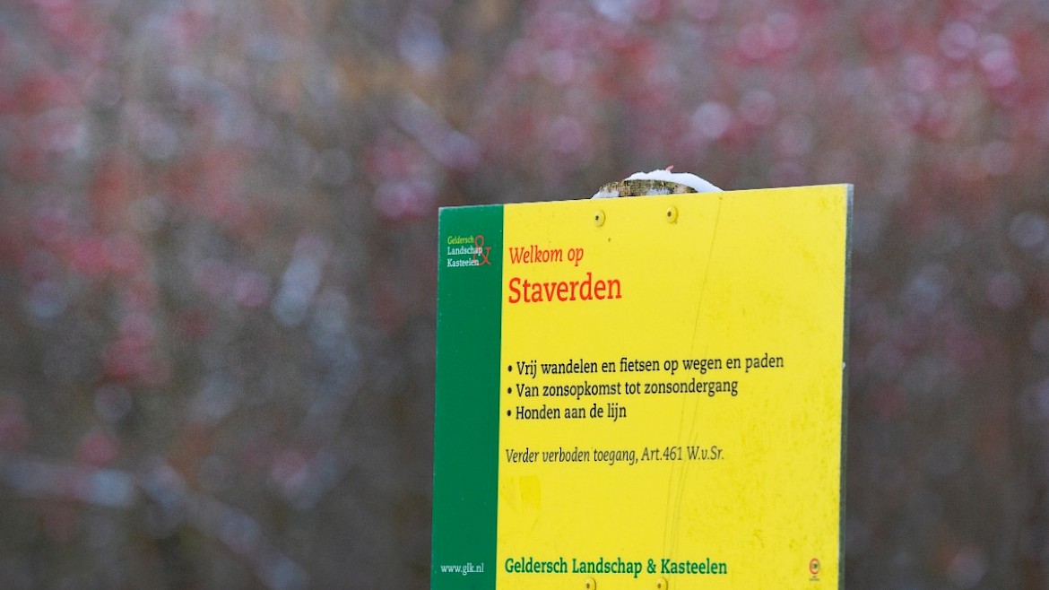 Staverden met z’n 80 inwoners valt niet te missen. Wie van Harderwijk naar Apeldoorn rijdt, ziet ineens loofbomen opdoemen met prachtig groen blad eraan en in de winter kale takken. Dat is raar midden op de Veluwe met zijn zand, heidevelden en naaldbomen. Tussen de loofbomen gaat het landhuis - kasteel zeggen ze in Staverden - met zijn bijgebouwen en fraaie tuin schuil. Ook de boerderijen, woningen en andere gebouwen zijn omgeven door het groen van de beuken, eiken en de weilanden.