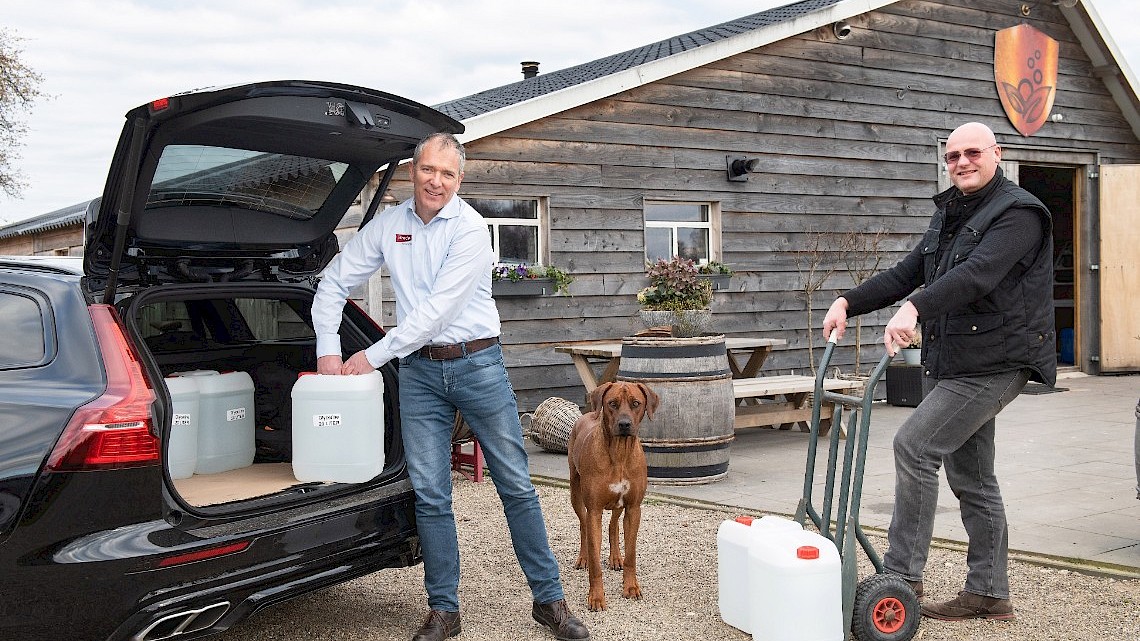 Naoberschap 2 april 2020 0In Zelhem bij Distilleerderij de Bronckhorst wordt hard gewerkt. Normaal gesproken distilleert Erik Legters whisky, jenever e.d, nu heeft hij het hele bedrijfsproces omgegooid om handdesinfectie te maken. Johan van den Heuvel, algemeen directeur van Bredel Hosepumps in Delden, zag de omslag van Distilleerderij de Bronckhorst op verschillende media voorbij komen, trok zijn stoute schoenen aan en zocht een samenwerking op.